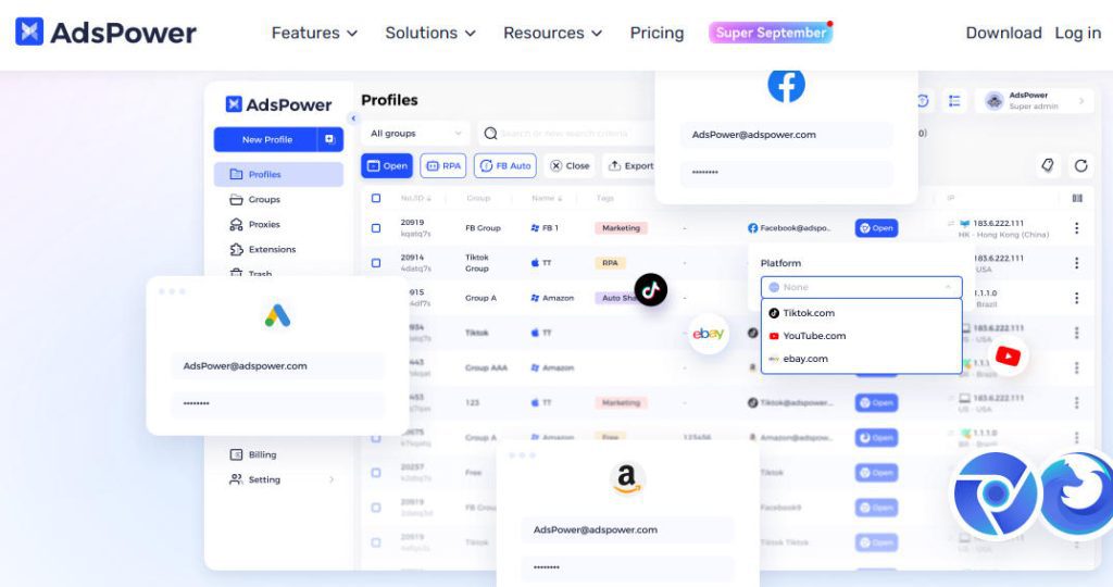 Complementing proxy services, multi-account management browsers such as Adspower are commonly used for legitimate testing, QA, and workflow management. Adspower offers realistic fingerprint simulation and centralized control for many browser profiles, making it useful for cross-region QA on platforms like Google, Facebook, TikTok, PayPal, Amazon, LinkedIn, X, eBay, and YouTube. When used ethically, these tools support tasks like localization checks, creative QA, and troubleshooting account-specific delivery issues.