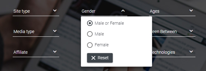 Media type,Gender,Site type. -