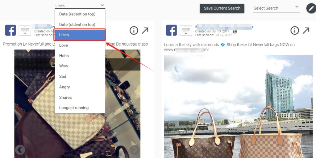 Be cautious: sorting purely by Likes may show old ads, which may not be relevant—especially for fast-fashion replica items.