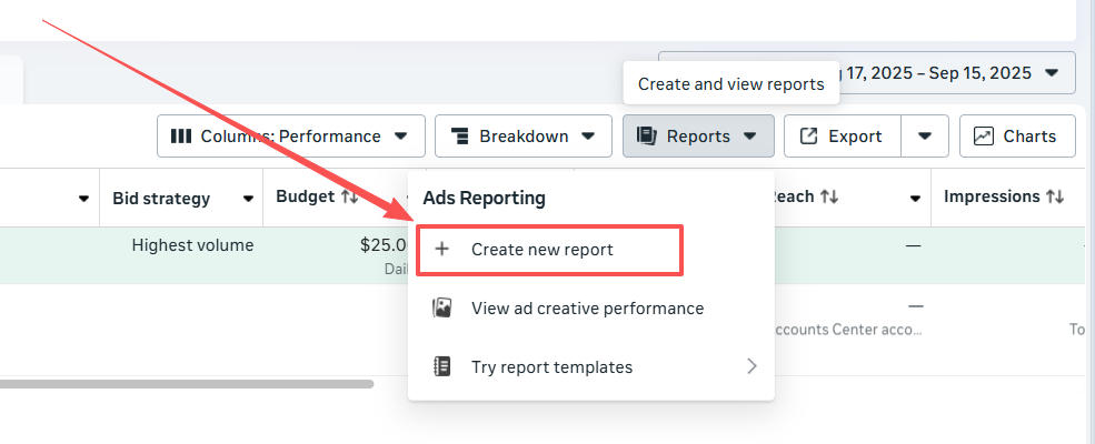 Switch to the ad set level, generate a report, and update it to reflect the latest data.