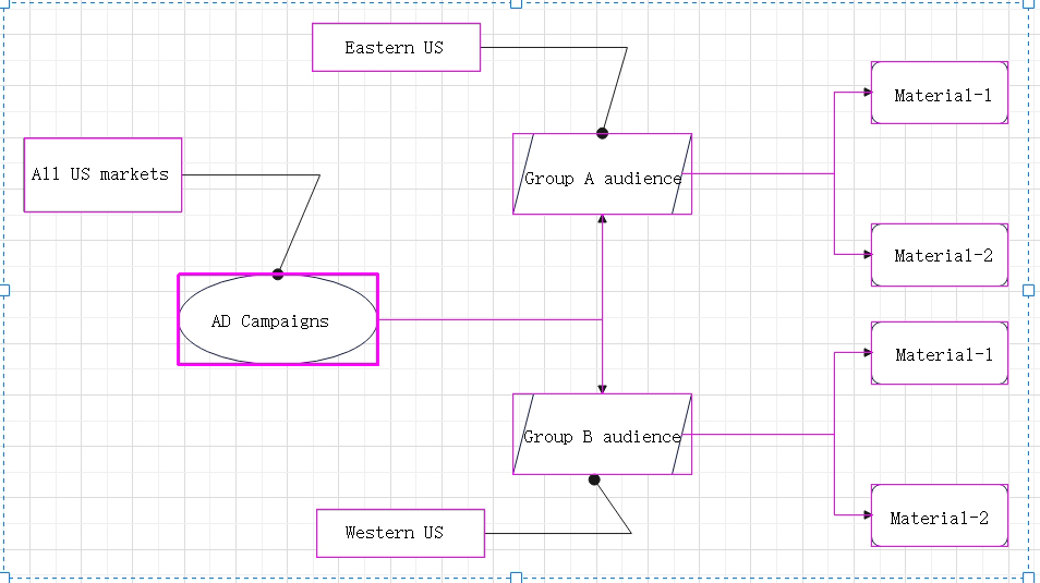 1:1:N: The same audience is tested with multiple creatives. Early-stage monitoring focuses on CTR.