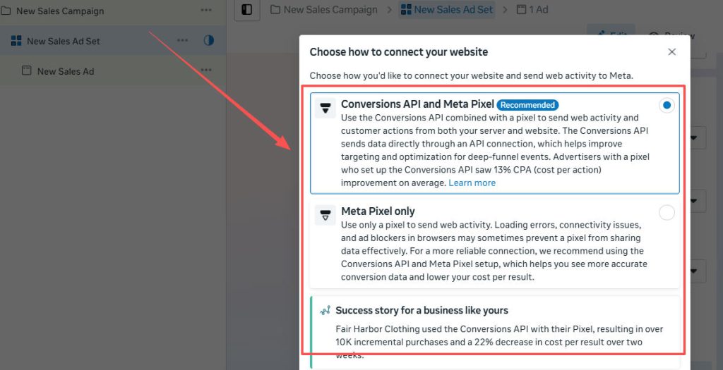 Typically, you will use a Facebook Pixel ID for installation. You can implement it either via the API or by adding the pure pixel code directly to your website—both methods are valid.