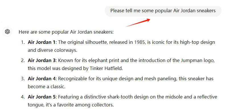 AI recommended the Jordan 1 series. However, I felt the style was too old—not what I wanted.