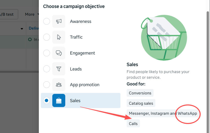 In Meta Ads Manager, you can choose traffic, engagement, or sales as objectives for your campaigns. Based on experience, the sales objective often brings more precise audiences, even though CPC and CPM costs may be slightly higher.