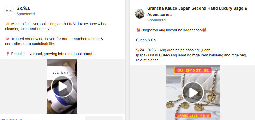 In the US and Canadian markets, especially for luxury replica categories, video ads usually perform much better than static image ads.