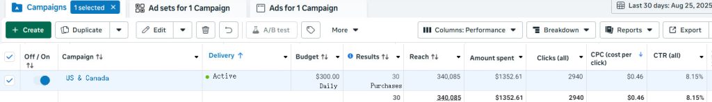 Overall, ad costs in the US and Canadian markets are relatively high, especially for fast-moving categories like bags, watches, and shoes. Competition is fierce, so getting as close as possible to industry benchmark metrics is always the goal.