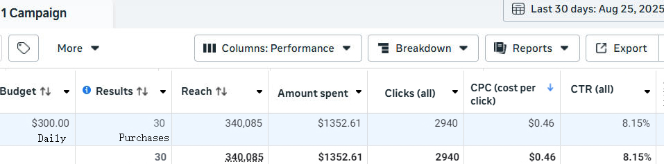 ⚠️ Important Note: During the ad learning phase (usually the first 3 days), costs will be higher — CPC and CPM may spike. As long as results don’t deviate too much from the benchmarks above, it’s better to stay calm, keep the budget steady, and allow the campaign to stabilize. Pausing too early because of “burning budget anxiety” often results in wasted spend.