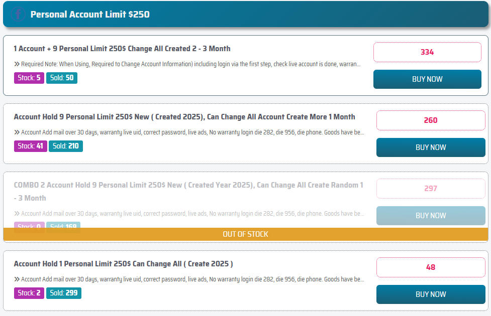 Of course, if your budget is higher, you can invest in accounts with unlimited billing limits — especially older accounts with billing history. These accounts are far more stable, carry higher weight, and are generally more favorable for running traffic. However, the downside is cost: an old billing account can go for around $70 each.