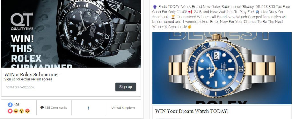 Such ads are common on Facebook. Replica watch ads, for instance, are everywhere.