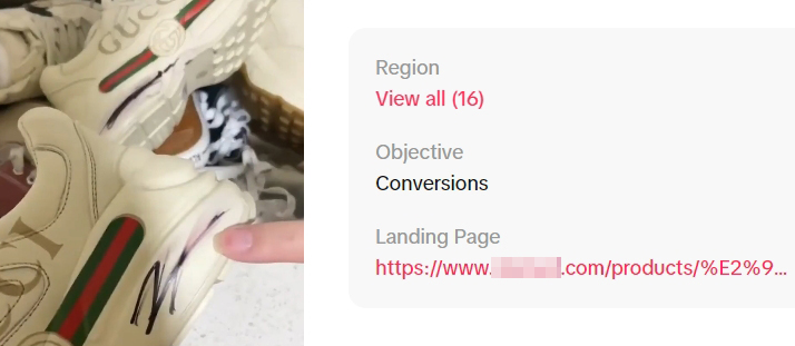 On TikTok, however, they are much rarer. After searching intensively and reviewing 30 days of historical data, it’s almost impossible to find genuine Putian/Guangzhou replica landing page ads on TikTok.