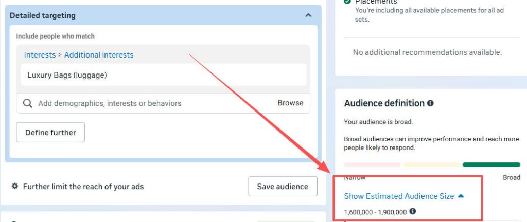 When using audience research tools, avoid overly broad targeting, as this can waste budget. Audience size should depend on the product category. Conversely, don’t make the audience too narrow, or the ad may stop before it reaches enough potential buyers.