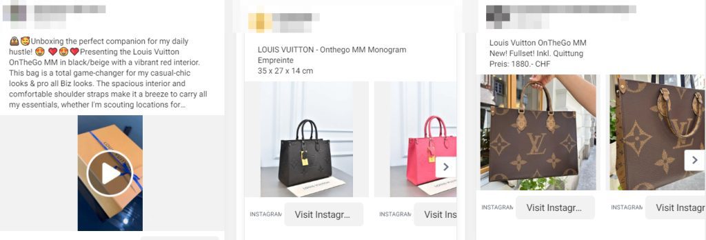 For example, if you plan to advertise the Louis Vuitton Onthego bag