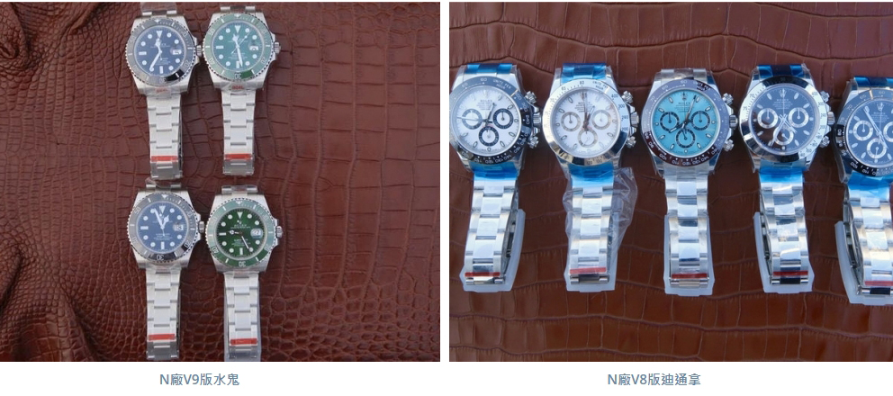 Among them, Rolex is their flagship product line. Classic models like the V9 Submariner and V8 Daytona are considered iconic within the factory’s collection. These timeless models directly influence downstream sales channels. In the cross-border eCommerce replica watch industry, Rolex remains a consistent bestseller and highly popular product for over a decade, truly exemplifying the saying: classics never go out of style.