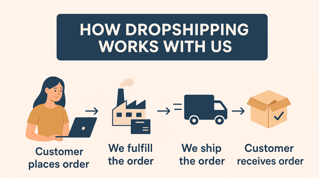 No storage. No unsold stock. No upfront costs. With our dropshipping service, you pay only after receiving orders, keeping your business lean and low-risk.