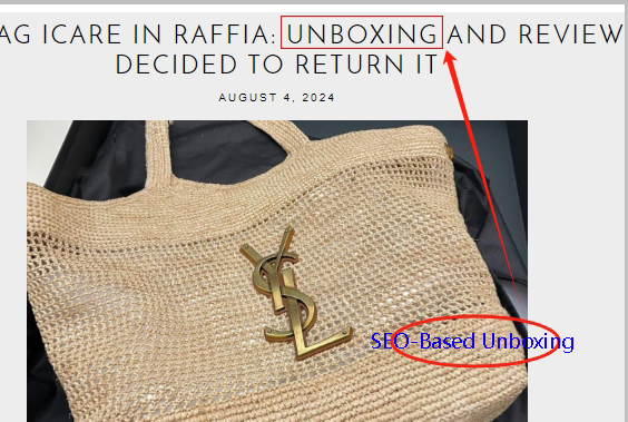 In one of her articles, she promoted a YSL replica through an unboxing review, using a free, organic SEO strategy rather than paid ads.