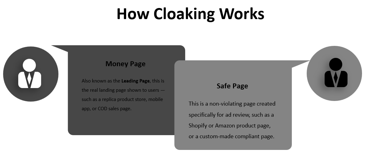 Besides the two points above, a powerful replica e-commerce website should also have the ability to pass ad reviews and ensure stable ad delivery on platforms like Facebook, TikTok, and Google. This is commonly known as “Cloaking” technology.