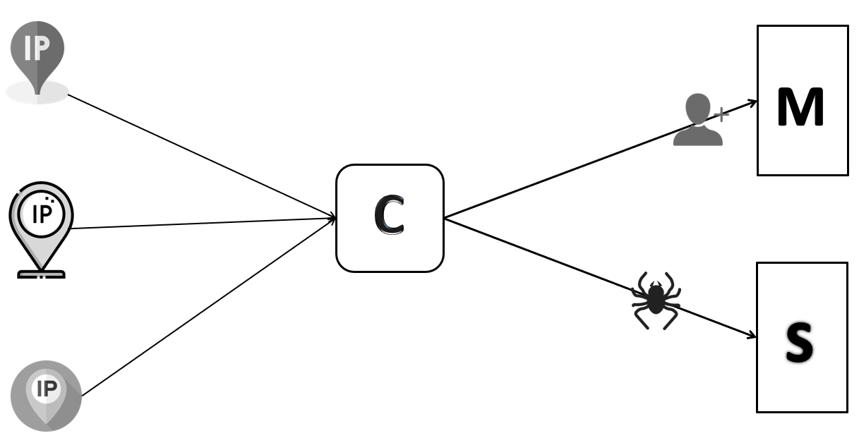 Just like in the diagram below, real users and ad crawlers are filtered and directed separately.