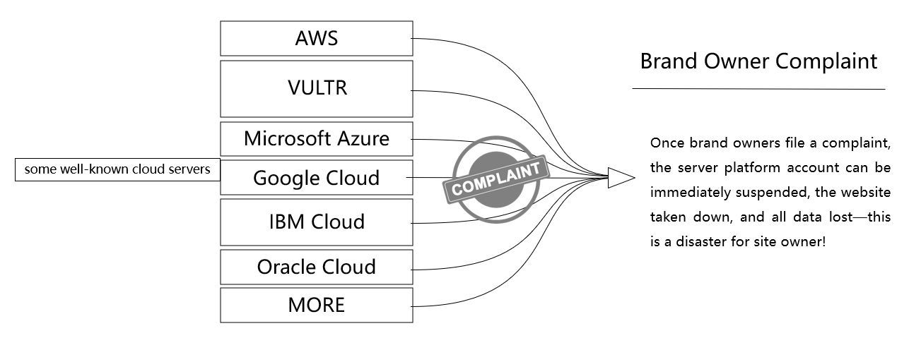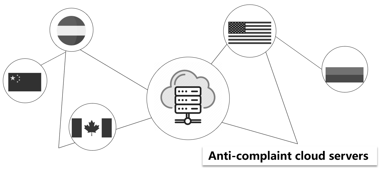 The principle of complaint resistance for servers is similar to that of domains: the hosting provider can withstand complaints and simply choose to ignore them.