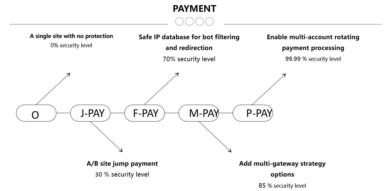 Payment security must address account reviews and shutdowns. Old-school techniques like redirecting between two sites (A/B switching), polling payment, and dual databases are outdated and cannot evade PayPal or Stripe’s bot detection. A robust and reliable payment solution must include anti-bot technologies to detect crawlers and blacklist recognition.