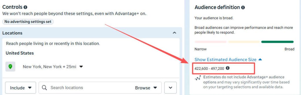 Adjust audience size scientifically, considering budget, placement, and interests.